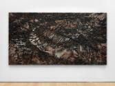 Mediumsolid charcoal, wood, volcanic rock, and mixed media on aluminum panel